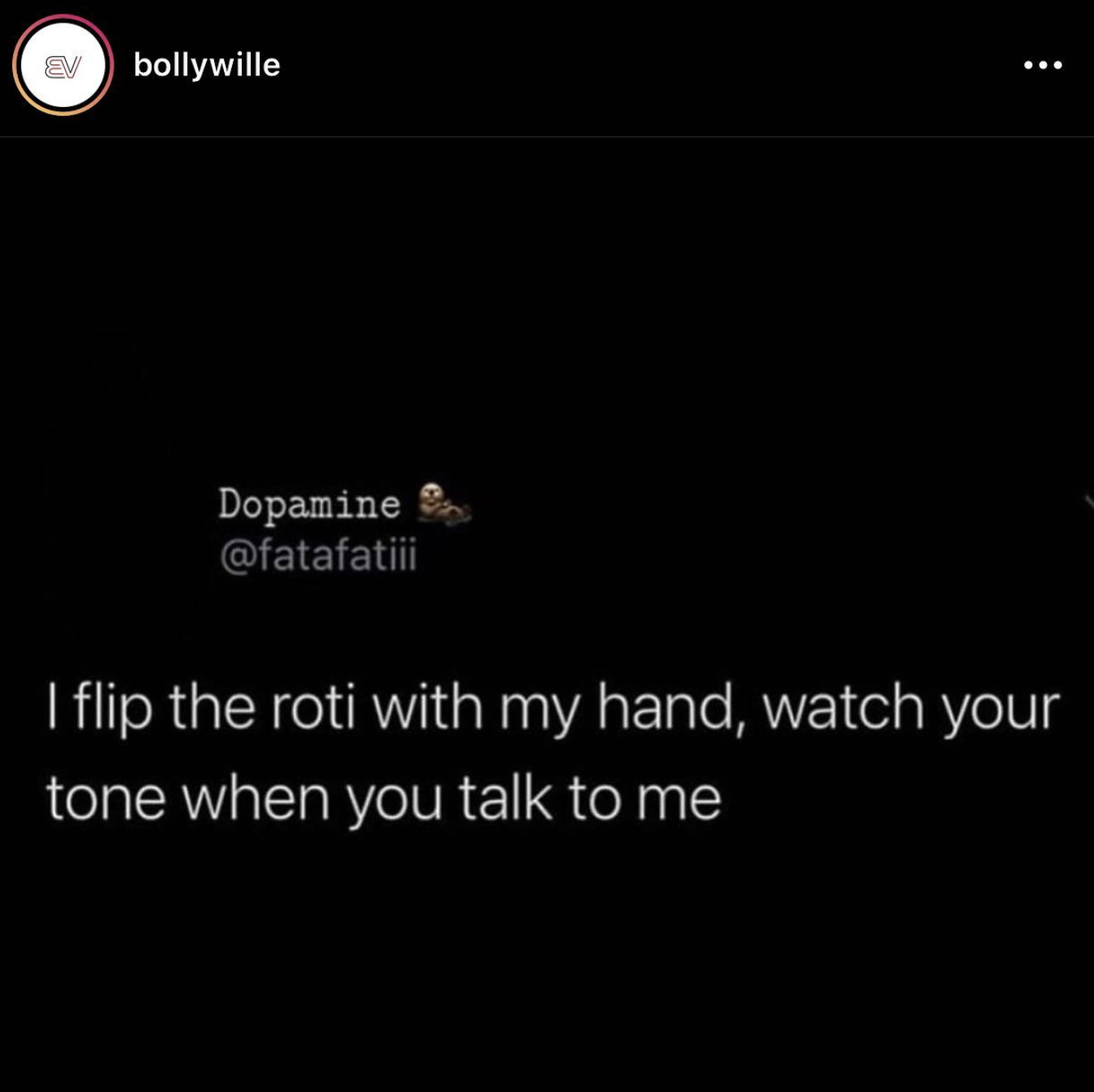 The process and education of roti-making can be a stronghold in the mother-daughter relationship, where the process of handing down knowledge can strengthen it and the process of teaching the daughter can, well, result in memes such as this. The tension between the two is perfectly encapsulated in this meme. It is also funny when considering that she has probably never made a roti in her life.